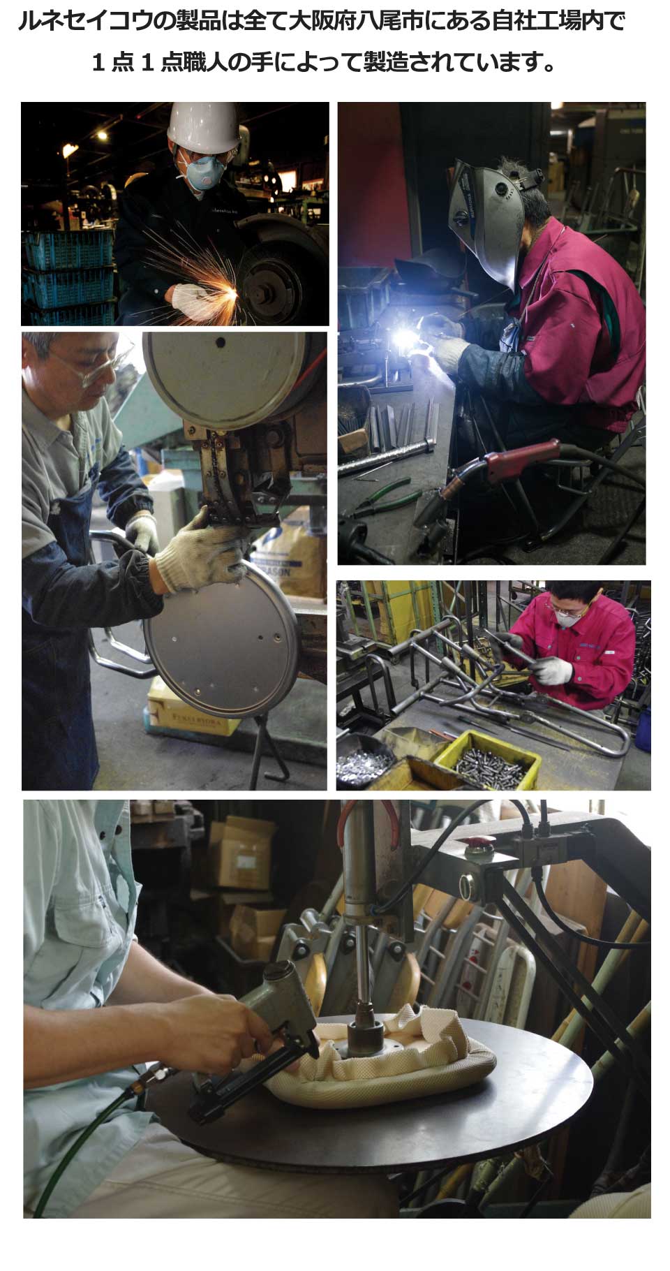 *製品の特性上、座面後部に偏って座ったり、使用中に揺らすなどなされると、座面が多少下がる事があります。